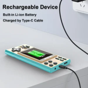 Dive into nostalgia with the GV300S Mini TVStyle Video Games Player. This handheld console features a classic design, perfect for Christmas gifts. It includes a rechargeable lithium battery, ensuring portability and convenience. The console is equipped with a gamepad, enhancing the gaming experience. Ideal for kids, it offers protection while playing.
